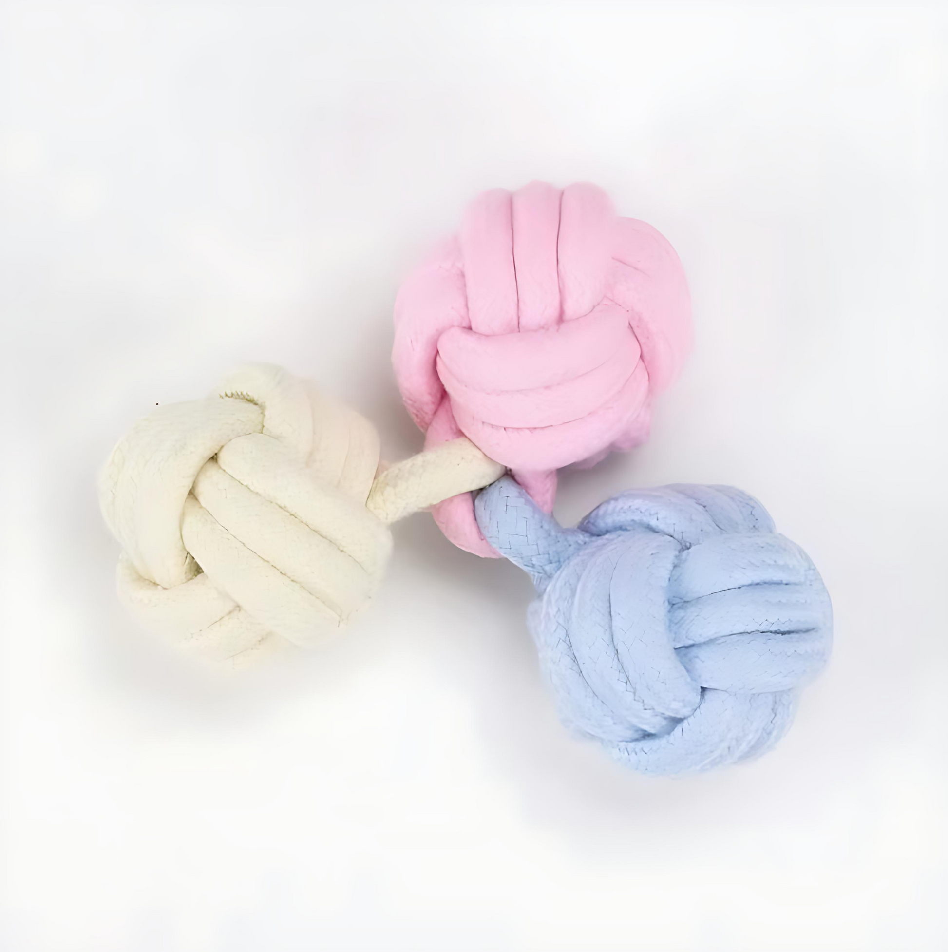 Fun, colorful rope ball toys designed for chewing, tossing, and fetching. Made from cotton rope for durability and dental benefits.